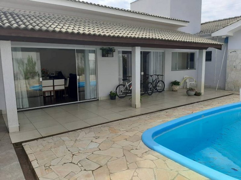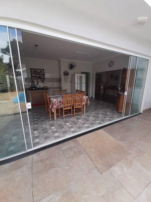 * cozinha planejada com balcão e armários, despensa, depósito, lavanderia, área gourmet com churrasqueira, fogão e forno de lenha, piscina, quintal com árvores frutíferas, garagem com 2 vagas cobertas, excelente vista para bosque.