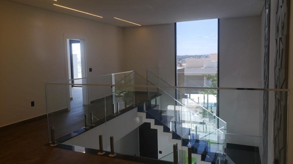 Janelas integradas sendo três motorizadas. Portas e janelas externas em alumínio preto com pintura automotiva, portas internas da marca Pormade, anticupim, resistente a umidade. Fechadura eletrônica, iluminação de LED e infraestrutura para ar condicionado.